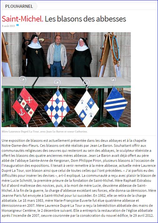 Voici une exposition qui pourra intéresser nos amis héraldistes en Bretagne.