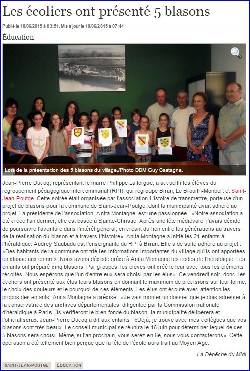 Un article de La Dépêche du Midi du 10 juin 2015.
