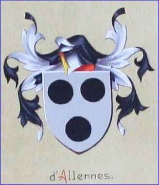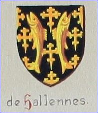 Je ne connais donc pas le blason des dHallennes qui est De sable semé de croix au pied fiché et de deux dauphins adossés d'or, brochant sur le tout. Il a mis celui des d'Allennes pour les d'Hallennes.