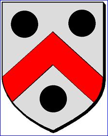 REPONSE (le 15/05/2024) Il s'agit en fait d'un chevron de gueules: "D'argent au chevron de gueules accompagné de trois tourteaux de sable."