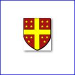 De gueules à la croix d'or cantonnée de quatorze étoiles de même, huit en chef 2 et 2, six en pointe 2 et 1.