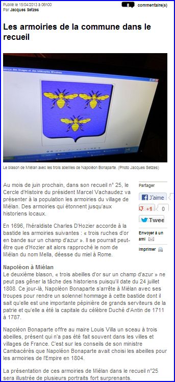 Article de presse Sud Ouest du 15 avril 2013.