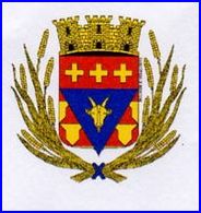 (1999) D'azur au rencontre de chèvre d'or, chaussé vairé en beffroi d'or et de gueules; au chef cousu de gueules chargé de trois croisettes d'or.