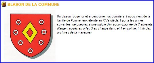 De gueules à la mâcle d'or accompagnée de sept annelets d'argent ordonnés en orle, trois en chaque flanc et un en pointe.
