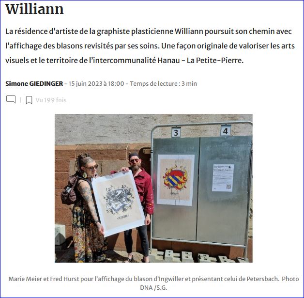 Article de presse Dernières Nouvelles d'Alsace du 15 juin 2023 (site du journal).