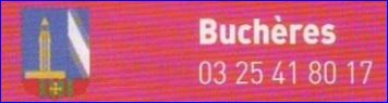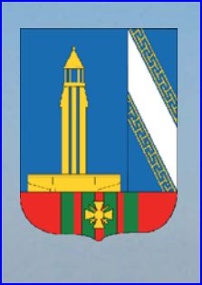 D'azur au mémorial du lieu d'or; senestré d'azur à la bande d'argent côtoyée de deux jumelles potencées imbriquées intérieurement d'or; le tout sur une champagne de gueules chargée au centre de quatre vergettes cousues de sinople et à la croix de guerre d'or brochant sur les deux du milieu.