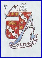 Écartelé: aux 1er et 4e de gueules à la fasce d'argent accompagnée de trois besants d'or rangés en chef et d'un lion léopardé d'or en pointe, aux 2e et 3e de gueules à la bande ondée d'argent chargée de trois étoiles de six rais de sable et accompagnée de deux étoiles à six rais d'argent.