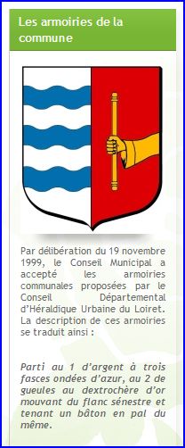 (1999) Parti: au 1er d'argent à trois fasces ondées d'azur, au 2e de gueules au dextrochère d'or, mouvant du flanc et tenant un bâton du même.