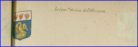 D'azur au pélican d'or, avec sa piété dans son aire du même; au chef d'argent chargé de trois flammes de gueules.