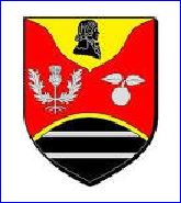 (2011) De gueules au chardon feuillé d'argent à dextre et à la mirabelle feuillée du même à senestre; au chef triangulaire ondé d'or chargé du buste de Bottin contourné de sable; à la champagne voûtée de sable bordée d'or chargée de deux trangles d'argent.