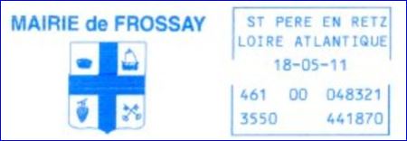 (1946) D'or à la croix de sable, cantonnée au 1er d'une corbeille du même rayée du champ, au 2e d'un drakkar contourné de sable habillé de gueules, au 3e d'une grappe de raisins du même, les grains ombrés du champ, pamprée de sable, au 4e de deux clefs du même passées en sautoir.
