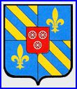 (1935) Écartelé: aux 1er et 4e bandé d'or et d'azur, aux 2e et et 3e d'azur à la fleur de lis d'or; sur le tout, de gueules à trois roues d'automobile d'argent.