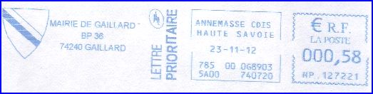 (1977) D'or à la bande partie dans le sens de la bande [tranchée] de gueules et d'azur.