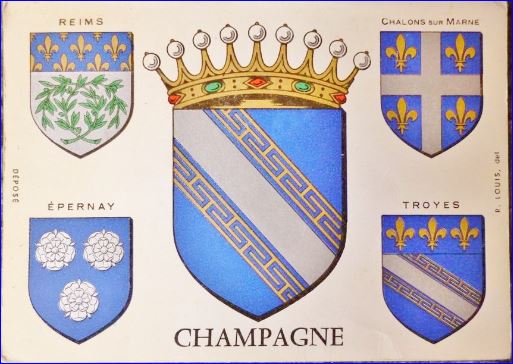 (XIIe s.) D'argent à deux rinceaux de laurier de sinople courbés et passés en double sautoir; au chef d'azur semé de fleurs de lis d'or.