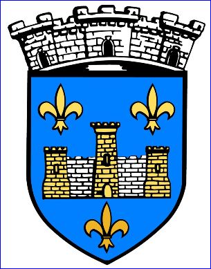 D'azur au château de trois tours d'or, les entre-murs d'argent, le tout maçonné et ajouré de sable, accompagné de trois fleurs de lis d'or.