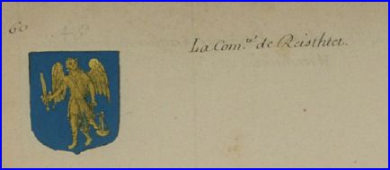 D'azur à l'archange saint Michel tenant dans sa dextre une épée et dans sa senestre une balance, le tout d'or.