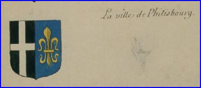(XIXe s.) Parti: au 1er de sable à la croix d'argent, au 2e d'azur à la fleur de lis d'or.