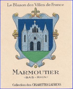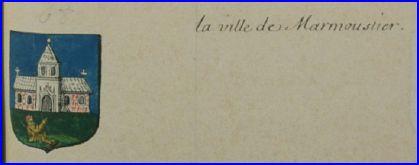 (1458) D'azur au portail d'église romane de trois portes d'argent, maçonné, ouvert et ajouré de sable, posé sur une terrasse de sinople.
