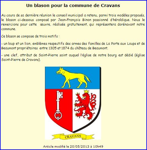 Blason sur le site de la commune, 2013.
