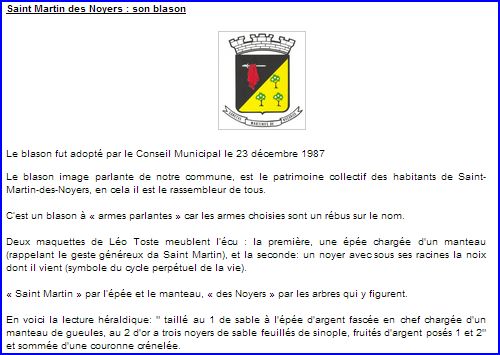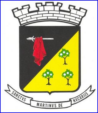 (1987) Taillé: au 1er de sable à l'épée d'argent posée en fasce la pointe vers senestre, supportant un manteau de gueules, au 2e d'or à trois noyers fûtés de sable, feuillés de sinople et fruités d'argent, ordonnés 1 et 2.