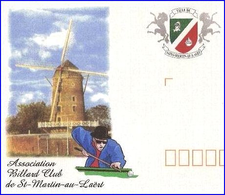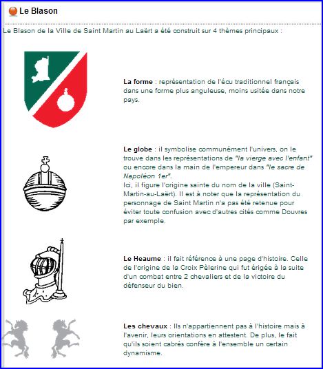 (1993) Taillé: au 1er de sinople au heaume de tournoi d'argent taré de trois-quart et senestré de la Croix Pélerine du même brochante, au 2e de gueules au globe croiseté d'argent; à la cotice en barre du même brochant sur la partition.