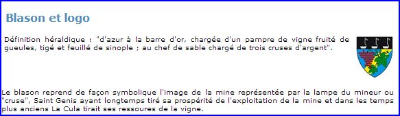 D'azur à la barre d'or, au pampre de vigne de sinople, fruité de gueules, brochant sur le tout; au chef cousu de sable chargé de trois cruses [lampes de mineurs] d'argent.
