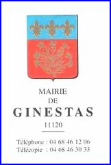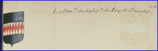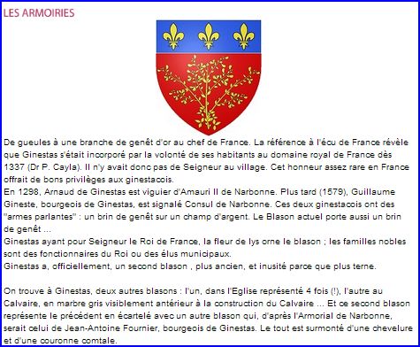 De gueules à la branche de genêt fleuri d'or; au chef cousu d'azur chargé de trois fleurs de lis d'or.