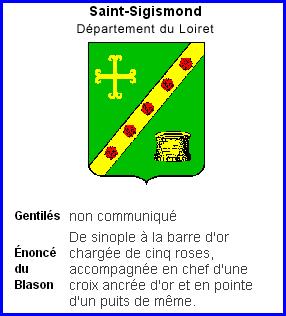 (2006) De sinople à la barre d'or chargée de cinq roses de gueules, accompagnée en chef d'une croix ancrée d'or et en pointe d'une margelle de puits du même maçonnée de sable.