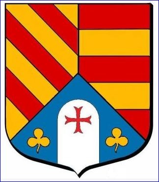 Tiercé en pairle renversé: au 1er d'or à trois bandes de gueules, au 2e de gueules à deux fasces d'or, au 3e d'azur au pal d'argent émoussé en chef, chargé d'une croisette du Temple de gueules dans l'arrondi et accosté de deux trèfles d'or.