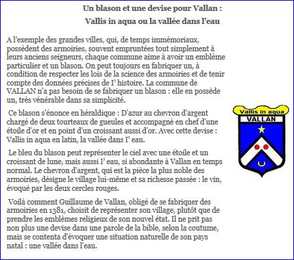 Devise: « Vallis in aqua » (la vallée dans I’ eau).