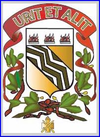 (1874) D'or à la bande re-bandée vivrée d'argent et de sable; au chef d'argent chargé de trois charbons de sable enflammés de gueules.