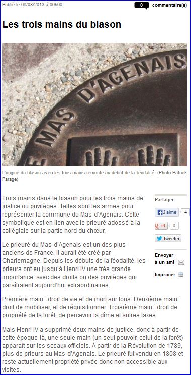Article de presse Sud-Ouest du 6 août 2013, sur le site du journal.