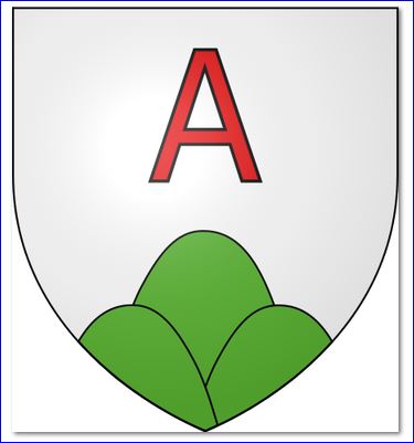 D'argent à la montagne à trois coupeaux de sinople, surmontée de la lettre capitale A de gueules.
