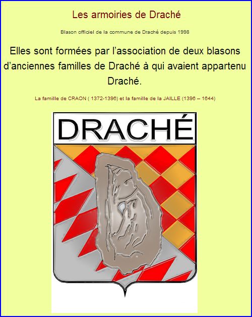 Tranché: au 1er losangé d'or et de gueules, au 2e d'argent à la bande fuselée de gueules; au menhir « la pierre percée » au naturel brochant sur le tout.