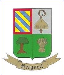 Écartelé: au 1er d'or à trois bandes d'azur et à la bordure de gueules, au 2e d'argent à la chapelle du lieu d'or brochant sur une crosse contournée de tenné, au 3e de sinople à l'arbre au naturel, au 4e de sinople à la gerbe de blé d'or.