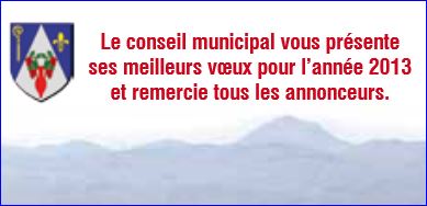 D'argent à l'amphore de gueules d'où sortent deux branches de vignes de sinople, fruitées chacune de deux pièces de gueules; chapé d'azur chargé à dextre d'une crosse contournée d'or et à senestre d'une fleur de lis du même.