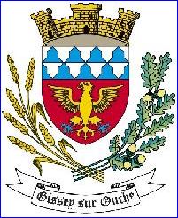De gueules à l'aigle d'or membrée d'azur; au chef de vair.