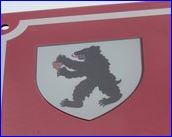 (1973) D'argent à l'ours rampant de sable, lampassé de gueules, tenant dans sa dextre une grappe de raisin du même.