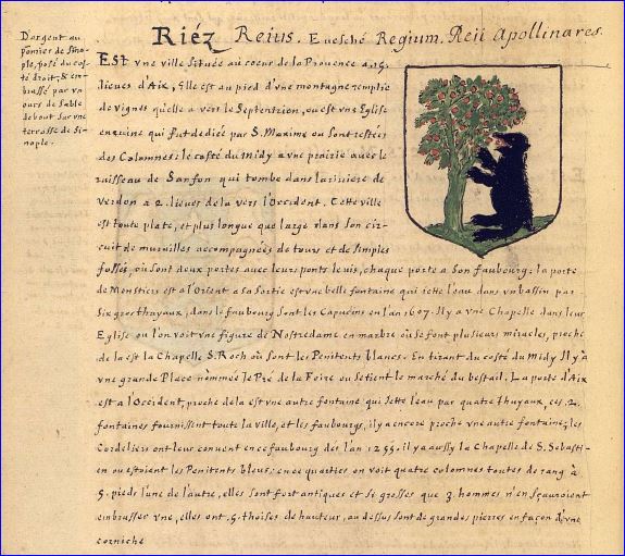 Armorial de Pierre de La Planche, 1669. La description des provinces et villes de France, extrait. Bibliothèque du Musée Condé de Chantilly.