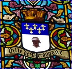 Le blason de la ville de Thérouanne tel qu'il apparaît sur un vitrail de 1901,