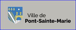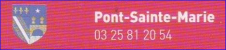 Parti: au 1er d'azur à la bande d'argent côtoyée de deux doubles jumelles potencées imbriquées intérieurement d'or et au chef d'azur chargé de trois fleurs de lis d'or, au 2e d'azur au pont de pierre d'une seule arche d'or mouvant des flancs, posé sur une rivière d'argent mouvant de la pointe et surmonté de deux gerbes de blé d'or elles-mêmes surmontées d'une étoile d'argent.