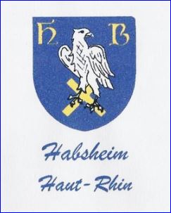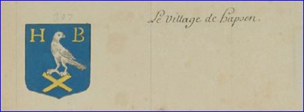 D'azur à l'autour [oiseau de proie] regardant d'argent posé sur un perchoir d'or, accompagné en chef des lettres antiques H et B du même.
