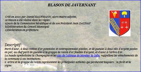(2001) Parti: au 1er d'azur à la jumelle en bande, potencée imbriquée intérieurement d'or, au 2e de gueules à deux clefs d'argent, les pannetons affrontés; au chef parti au I de gueules à la grappe de raisin d'or feuillée d'argent, au II d'azur à l'arbre d'or.