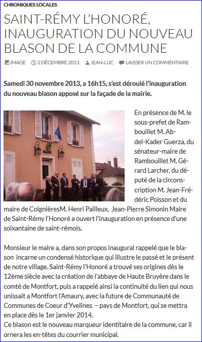Article de presse La Gazette du Montfortois du 2 décembre 2013 (1/2).