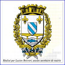 (1967) D'azur au pont de trois arches d'or sur des ondes d'argent chargées d'un poisson du champ, à l'écusson d'argent à deux bandes d'azur brochant sur le tout et surmonté de deux fleurs de lis d'or.