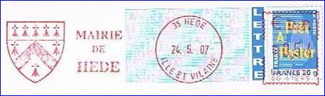 D'argent au chevron de sinople, accompagné de trois mouchetures d'hermine de sable; au chef d'argent chargé de cinq mouchetures d'hermine de sable.