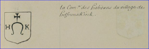 D'argent à l'anse sommée d'une croisette pattée au pied fiché et accostée des lettres capitales H et K, le tout de sable.