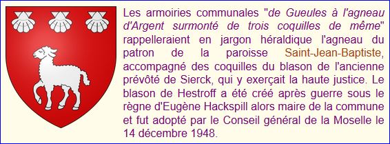 (1948) De gueules à l'agneau d'argent surmonté de trois coquilles du même rangées en chef.
