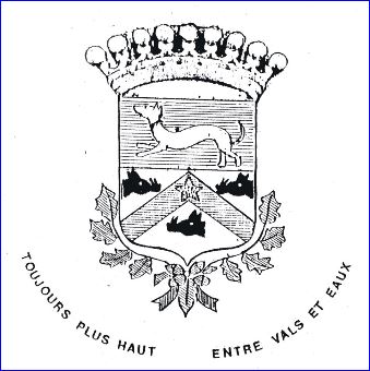 (1990) D'argent au chevron d'azur chargé d'une étoile d'or, accompagné de trois hures de sanglier de sable défendus d'argent, celles du chef affrontées; au chef d'azur chargé d'une levrette courant d'argent colletée de sable.
