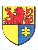 Coupé: au 1er d'or au lion issant de gueules armé et lampassé d'azur, au 2e parti au I d'or plain, au II d'azur à l'étoile de six rais d'or.